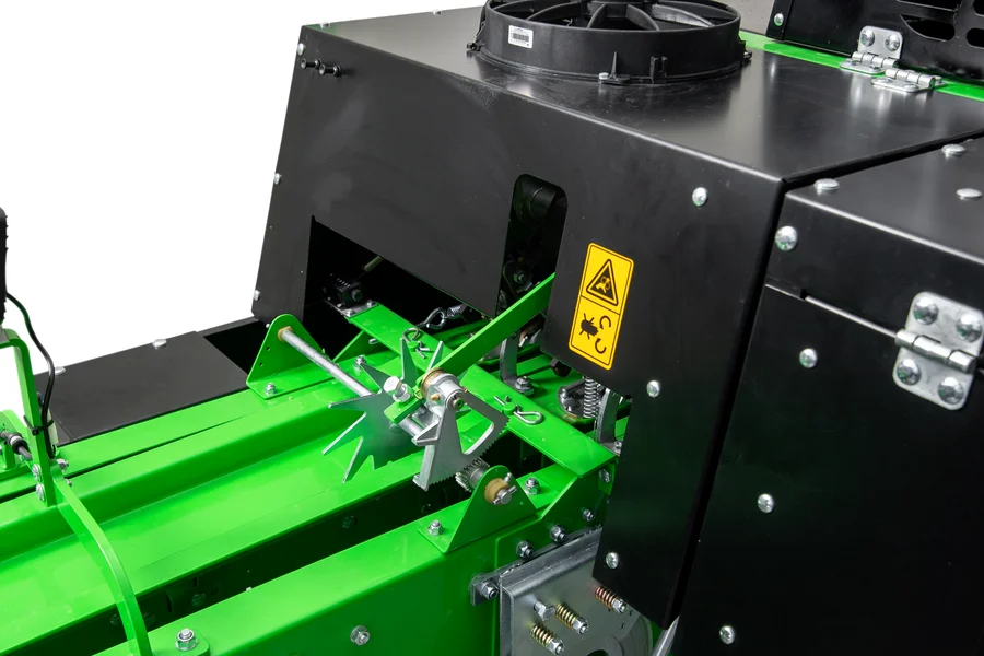 The baler ARGA BK 02, due to its light weight, is also suitable for smaller tractors and use on hilly terrain. It comes standard with included hydraulic drawbar shift and hydraulic swath curtain adjustment, which allows for quick and easier baler setup.