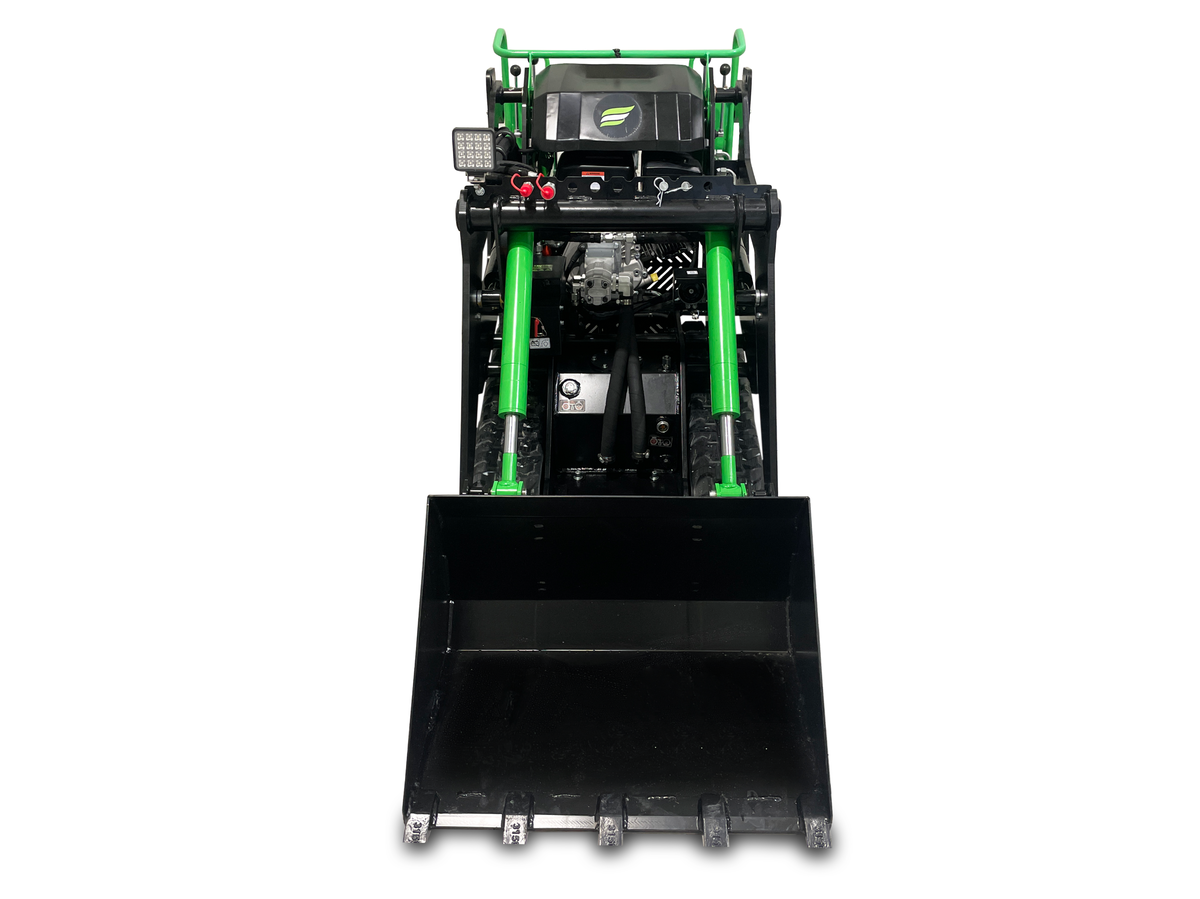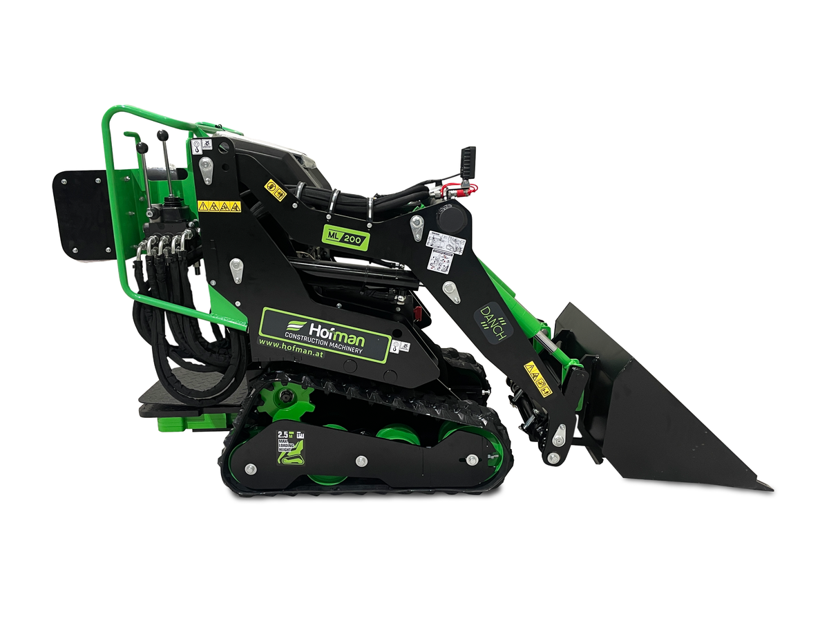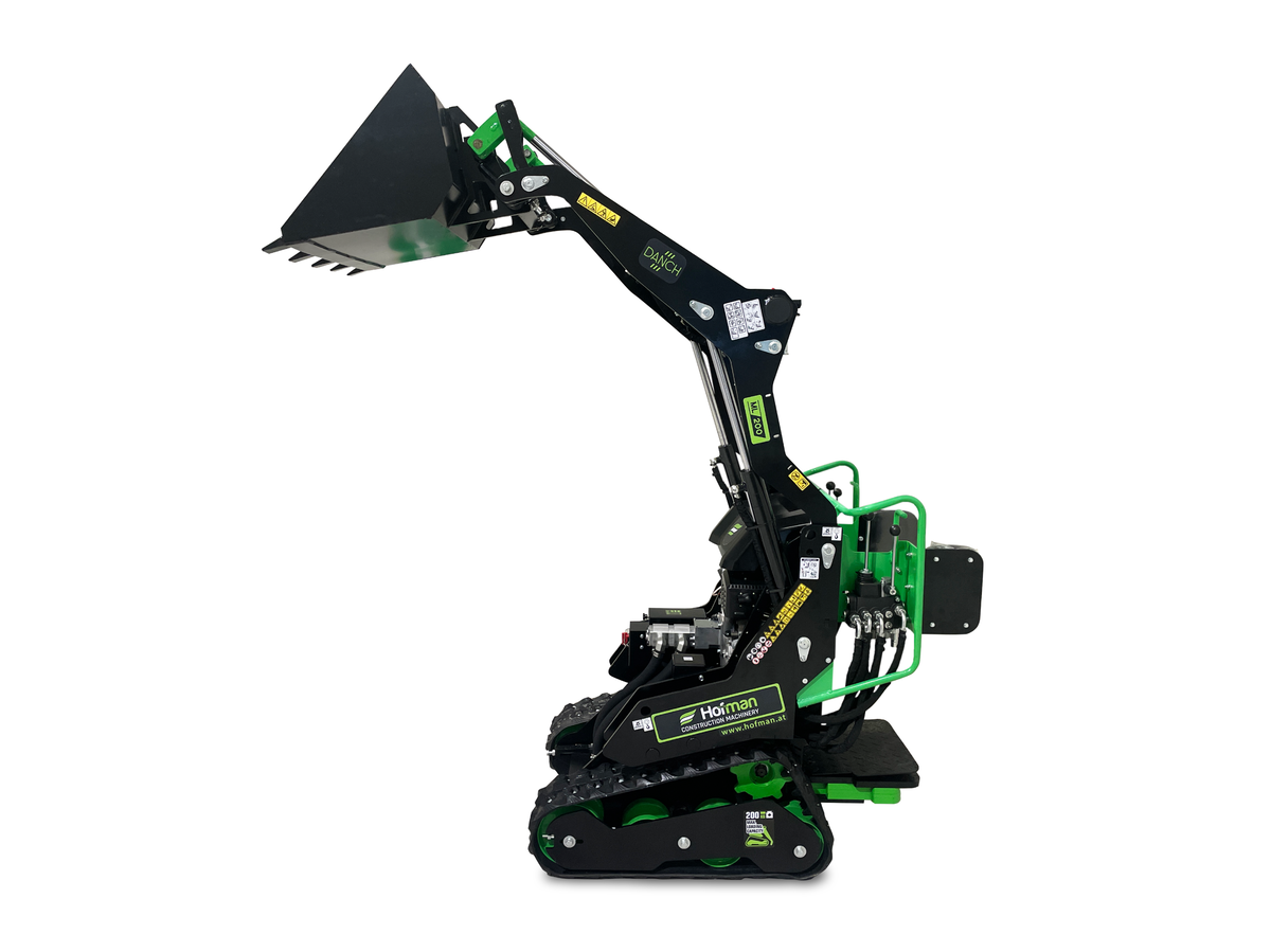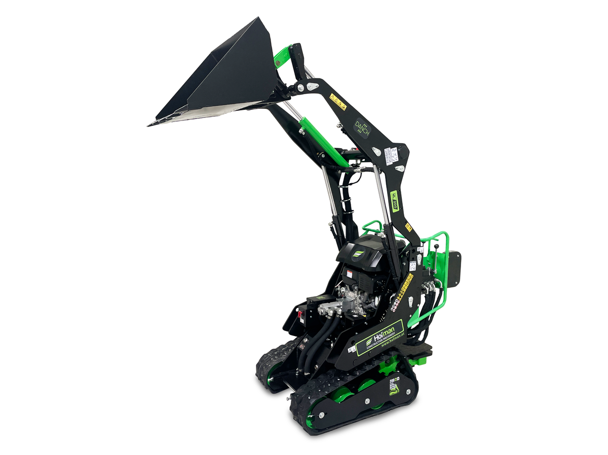 Mini nakladalnik DANCH je kompakten in zanesljiv stroj za zemeljska dela, primeren za uporabo na kmetiji, vrtu ali gradbišču. Poganja ga zmogljiv bencinski motor, ki omogoča zanesljivo delovanje v vseh pogojih. Opremljen je s priročno 80-litrsko nakladalno žlico, ki omogoča hiter in učinkovit zajem materiala. Zaradi visokega dviga lahko enostavno prelagate tovor tudi na prikolice. Upravljanje je enostavno preko preglednih, ergonomsko oblikovanih ročic. DANCH združuje moč, okretnost in praktičnost v enem stroju. Poleg že omenjene nakladalne žlice so v serijsko opremo vključeni še nakladalna žlica z zapiralnimi zobmi (krokodil), vrtalni sveder in paletne vilice.